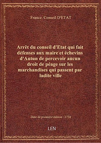 Arrêt du conseil d'Etat qui fait défenses aux maire et échevins d'Autun de percevoir aucun droit de telecharger. Vous pouvez également lire et télécharger les nouveaux et anciens E-Books complètes . Profitez-en et vous détendre en lisant complète